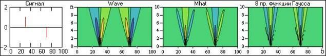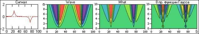 Заметим, что при анализе произвольных сигналов использование разнотипных вейвлетов позволяет повысить достоверность выделения локальных особенностей сигналов.