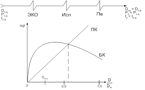 После интегрирования: Vп = f(D, P, ℓисп, q, r), т. к. dтрПК < dтрБК (40мм < 60мм), то VводыПК < VводыБК → то доля аккумулированной теплоты в воде и паре для ПК меньше, чем для БК.