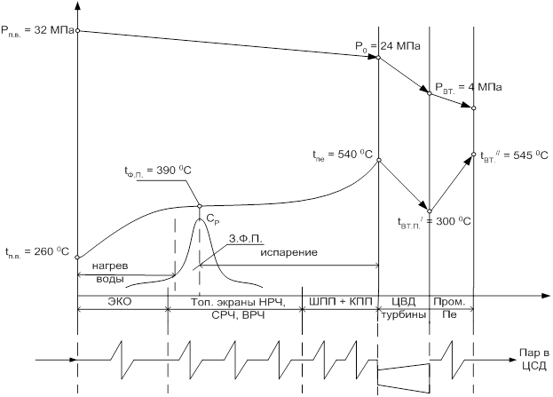 2. Возможность работы на сверхкритическом давлении P = 25,5 МПа.