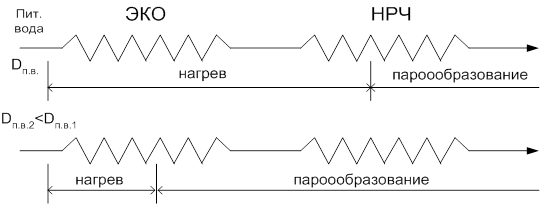 Б). Прямоточный котёл (нарушение гидродинамической устойчивости):