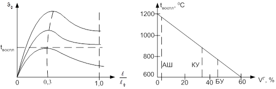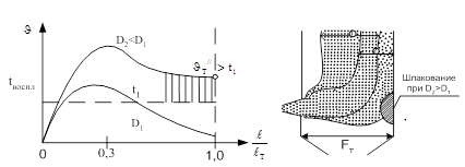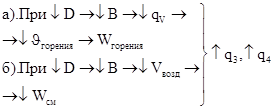 При ↓D → ↓В и меняется характер теплообмена в топке по длине факела. Нарушение устойчивости при υф < tвоспл. При этом tвоспл = f(сост. топлива).