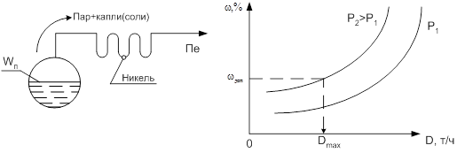 С ↑D > Dmax → ↑Wпара > Wпдоп = 0,5 м/с → ↑↑ω > 0,33 % (доп) → ↑ заброс капель с солями в Пе: ↑↑↑