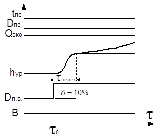 При переходе от одного режима к другому происходит нарушение материальных и энергетических балансов из-за изменения Qтепловыд-я, tп.в., Dп.в., что нарушает равенство