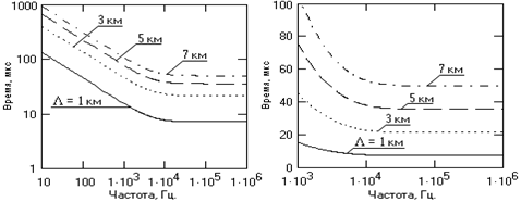Рис. 12.3.6. Функции временной задержки волн в кабеле |