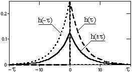 2. Выходной результат y(t) = h(t)*h(-t)*s(t) предыдущей операции позволяет, используя свойство коммутативности свертки, сначала выполнить свертку h(t)*h(-t) = h(±t) и получить один системный оператор h(±t) (см. рис. 3.2.4), обеспечивающий свертку без сдвига фазы. Этот системный оператор является двусторонним и симметричным относительно t = 0. Но использование его возможно только для предварительно записанных сигналов, т.к. при выполнении свертки y(t)= h(±t)*s(t-t) для отрицательных значений t требуются "будущие" значения входного сигнала s(t+t). Результат свертки с симметричным оператором полностью аналогичен первой операции (сигнал y(t) на рис. 3.2.3).