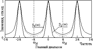 что обеспечивает выход спектра на нулевые значения на концах главного диапазона, как это имеет место для спектра S2(w) на рис. 5.2.2.