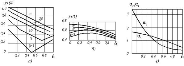 Рисунок 1.5.6 – Графики зависимостей y2(δ),y3(δ), а2(δ) и а3(δ)