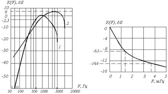 | Рисунок 1.5.2 – амплитудно-частотная характеристика псофометрических фильтров для телефонных (1) и вещательных каналов (2) | Рисунок 1.5.3 – Частотная характеристика унифицированного визометрического фильтрова |