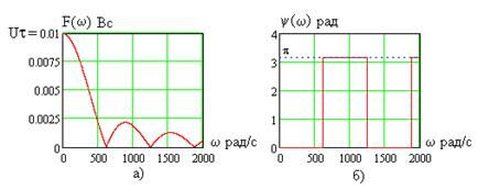Графики спектров амплитуд и фаз одиночного прямоугольного импульса с амплитудой