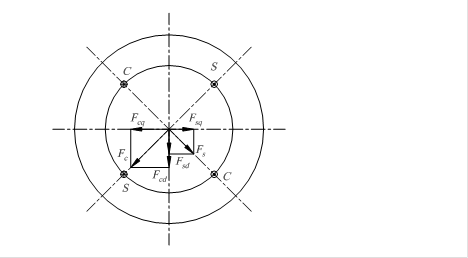 НС Fc можно представить, как и НС Fs , в виде векторной суммы двух составляющих: продольной Fcd=Fccosα и поперечной Fcq=Fcsinα. Продольная составляющая Fcd совпадает по направлению с Fsd, а поперечная составляющая Fcq направлена против Fsq. При равенстве Fcq =Fsq поперечный поток Фq будет равен нулю. Следовательно, не будет и погрешности, обусловленной этим потоком.