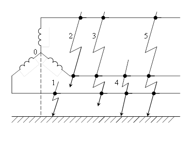 В промышленны системах, где нулевая точка заземлена, наиболее вероятно (≈70%) однофазное КЗ.