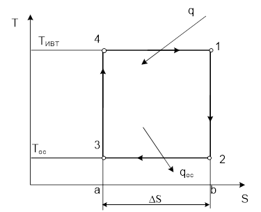 Считаем, что процессы 4-1 и 2-3 обратимы (т.е. Тисточников неизменны, Траб. вещ-ва совпадает с Тисточников).