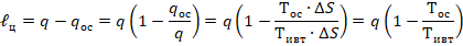 Эквивалентность обратимого цикла-образца определяется тем, что он имеет одинаковые с анализируемым циклом температуры источников Тинт, Тивт и одинаковую холодопроизводительность (для теплового насоса – теплопроизводительность). Работа эквивалентного обратимого цикла будет минимальной для заданных условий (температур), что позволяет при сравнении с работой необратимого цикла определить коэффициент обратимости последнего.