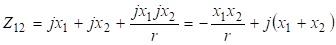 Если активное сопротивление в схеме электропередачи включено не последовательно, а параллельно, например, в виде промежуточной нагрузки на рис. 5.7, то взаимное сопротивление:
