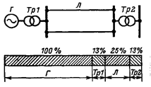 к напряжению генераторов оно уменьшается в отношении k2, где k — коэффициент трансформации повышающих трансформаторов системы. В результате этого с увеличением номинального напряжения линии реактивное сопротивление