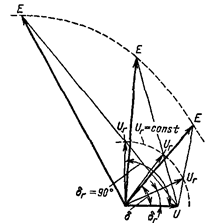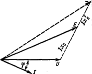 вектор э. д. с. генератора Е займет новое положение, показанное на диаграмме рис. 5.9 штриховой линией. Положение вектора напряжения генератора
