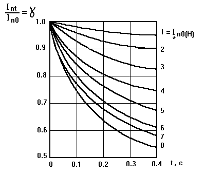 выбирают подходящую кривую, например 4, для расчетного момента t , предположим 0,25 с определяют коэффициент затухания