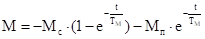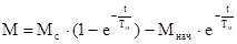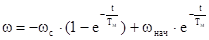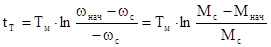 На втором этапе происходит разгон в противоположном направлении (после торможения противовключением и остановки). Знак Мс меняется на противоположный. Уравнения, описывающие переходный процесс будут иметь такой же вид, как для пуска двигателя, только wнач нужно принять равной 0, Мнач=-Мп и wс=-wс`,т.е.