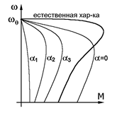 Другая характеристика соответствует наибольшему углу aмакс@1350. При таком угле момент двигателя М обычно меньше Мхх. Следовательно, при работе АД в замкнутой системе по мере увеличения его нагрузки угол a должен уменьшаться от некоторого aмакс до aмин.
