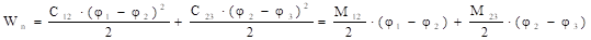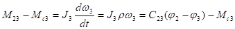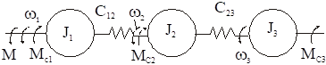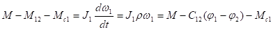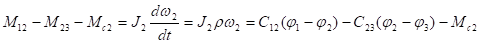 Здесь М12 и М23 – моменты упругого взаимодействия между инерционными массами J1 и J2, J2 и J3, зависящие от величины деформации j1-j2 и j2-j3.