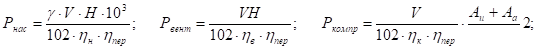 hн, hв, hк, hпер - КПД насоса, вентилятора, компрессора, передачи;