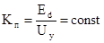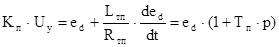 Зависимость ЭДС ТП от напряжения управления Uу при линейной характеристике СИФУ представлена на следующем рисунке. При ее замене линеаризованной ТП как динамическое звено системы электропривода в режиме непрерывного тока описывается уравнением