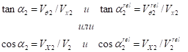 На выходе из статора абсолютная скорость - V2, с её осевыми и тангенциальными компонентами, определяемыми так же, как и скорость V1. Относительная скорость, для наблюдателя, на входе в ротор