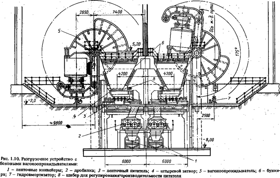 где В — часовой расход топлива электростанцией, т/ч; τр — время разогрева одной ставки полувагонов, ч; τм — время маневровых работ (на установку и вывод из размораживающего устройства одной ставки полувагонов), ч; к - коэффициент неравномерности подачи железнодорожных полувагонов на ТЭС; q — усредненная грузоподъемность полувагона, т. Для двухпутного комбинированного размораживающего уcтройства может быть принято τр = 1,5 ч и τм = 0,5 ч.