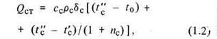 Для металлической стенки t’с и tс’’ и второй член в квадратных скобках равен нулю. При нагреве и размораживании слоя топлива толщиной δС на нагрев топлива от температуры t0 до 0 °С расходуется теплота Qн, на таяние льда — Qл, на разогрев влажного топлива от 0 °С до температуры tс’’ - Qл: