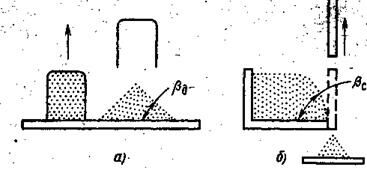 Рис. 1.1 Определение динамического (а) и статического (б) углов естественного откоса