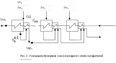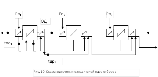 Охлаждение дренажа ОД снижает переток теплоты по дренажам от выше- до нижестоящих подогревателей.