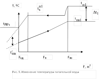 В поверхностных подогревателях конденсат турбин или питательная вода прокачивается по стальным или латунным трубкам, а греющий пар омывает эти трубки снаружи и конден­сируется на их поверхности. Температура пленки конденсата на трубках независимо от состояния пара (перегретый или насыщен­ный) приблизительно равна температуре насыщения пара при со­ответствующем давлении в паровом пространстве подогревателя. При передаче тепла от пара к воде температура нагреваемой воды всегда ниже температуры насыщения пара вследствие термического сопротивления стенки трубки и загрязнений на внутренней и  наружной ее поверхности. Величина недогрева, т. е. разность температуры насыщения греющего пара и температуры воды на выходе из подогревателя, обычно 2—6° С. Недогрев воды в подогревателе определяет эффективность их работы. При проектировании и paсчетах подогревателей недогрев воды в них выбирают путем технико-экономических расчетов.
