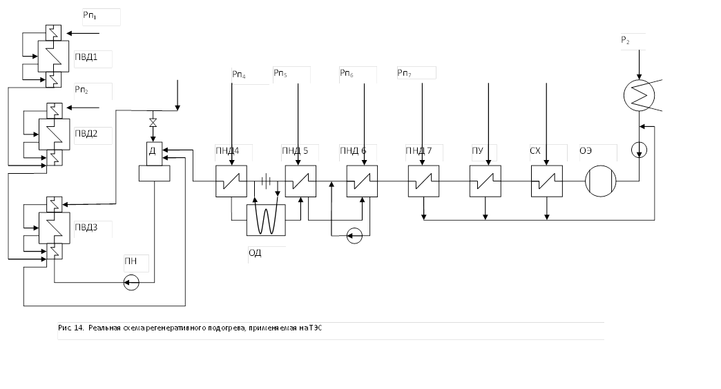 Реальная схема регенеративного подогрева, применяемая на ТЭС.