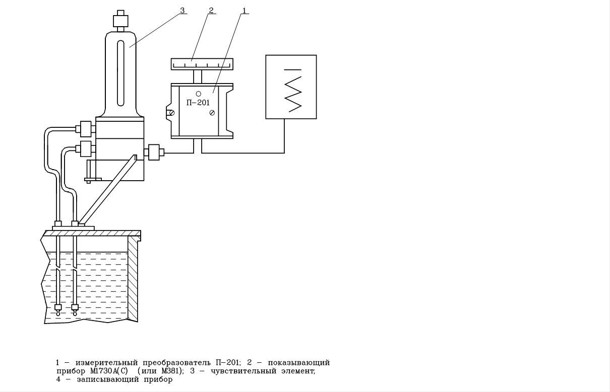 Рис. 46 Схема использования преобразователя П-201 в системе регулирования, измерения и регистрации.