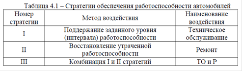 В настоящее время для обеспечения работоспособности автомобилей применяют три стратегии, приведенные в таблице 4.1.