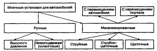Рис. 2.1. Укрупненная классификация моечных установок для автомобилей