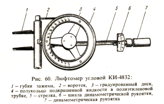 По такому же принципу устроен и люфтомер ХАДИ, только вместо жидкостного градуированного диска имеются сектор и стрелка.