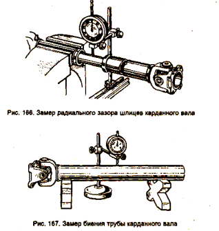 Эксплуатация автомобиля недопустима, если карданный вал сильно вибрирует или имеет повреждения. Суммарный угловой люфт карданной передачи не должен превышать 2°, а биение карданного вала — 1 — 1,2 мм.