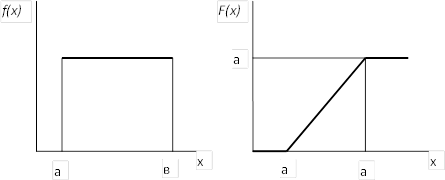 Закон равновероятного распределения — описывает непрерывные случайные величины, которые достоверно встречаются на некотором интервале от и до и и вероятность наблюдения случайной величины в этом интервале постоянна (рис. 2.6).