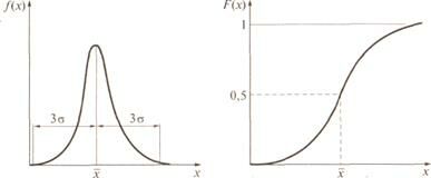 Характерной особенностью нормального закона является то, что кривая плотности вероятности симметрична относительно математического ожидания, а кривая интегральной вероятности зеркально симметрична относительно вероятности 0,5. Поскольку с вероятностью 0,997 нормально распределенная случайная величина укладывается в интервал