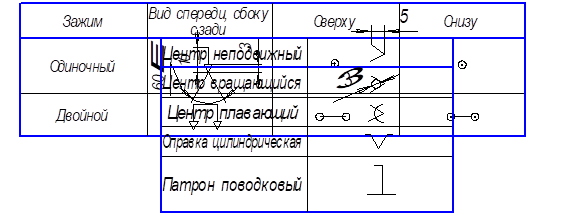 Установочно-зажимные устройства следует обозначать как сочетание обозначений установочных устройств и зажимов.