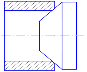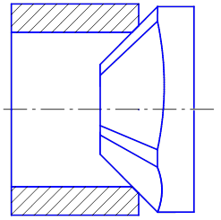 a - половина угла при вершине конуса (a = 1…3’). Отверстие у заготовки обрабатывается по Н7. Точность центрирования 0,005 – 0,01 мм. Применяется в единичном и мелкосерийном производстве. Погрешность базирования наружной поверхности относительно внутренней = 0.