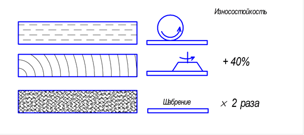 Пример влияния направления следов шероховатости на износ трущихся поверхностей: