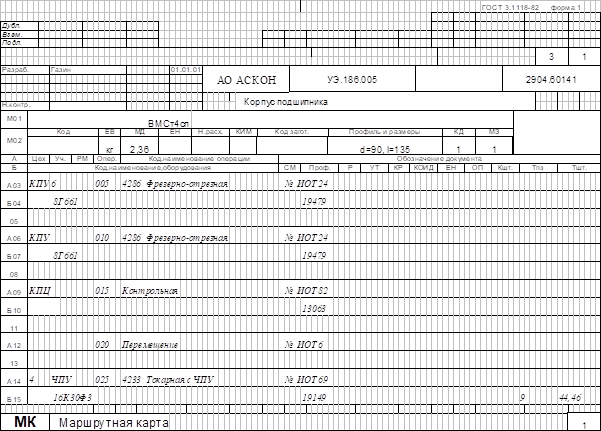 Маршрутные карты (МК) технологического процесса содержат следующие данные: