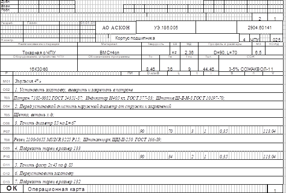 Операционные карты (ОК) технологического процесса содержат следующую информацию: