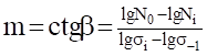 Параметр m, определяющий угол наклона прямой линии в левой части кривой усталости в логарифмических координатах (рис. 3), определяют как