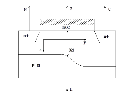На рис. 1.1 показано схематическое сечение МОП-транзистора, в котором ток течет между истоком (И) и стоком (С) в канале, направленном по оси y.
