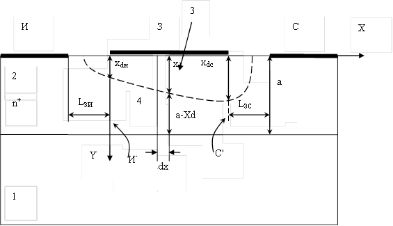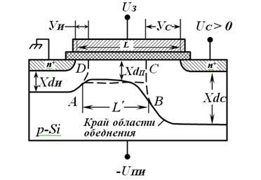 При Uси = 0 (Ic = Iи = 0) потенциалы всех точек канала одинаковы, и 1 Хdn=Хdc . Толщина ОПЗ определяется напряжением Uзи