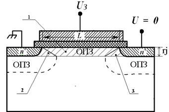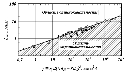 Критерий, разграничивающий длинно- и короткоканальные приборы, можно попытаться определить, используя одно из двух характерных свойств обычного длинноканального МОПТ: 1) обратно пропорциональную зависимость тока стока от длины канала