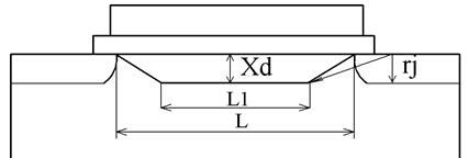 Здесь Lмин – минимальная длина канала, при которой подпороговый участок еще сохраняет длинноканальный характер, мкм; ri – глубина залегания переходов, мкм; d – толщина слоя окисла, (
